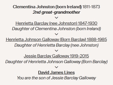 When Clementina Johnston (born Ireland) was born on 9 November 1811 in Edinburgh, Midlothian, her father, Archibald, was 27, and her mother, Clementina, was 22. She married Oliver Johnston in 1845 in her hometown. They had four children in 16 years. She died on 24 July 1873 in Greenside, Midlothian, at the age of 61, and was buried in Edinburgh, Midlothian.