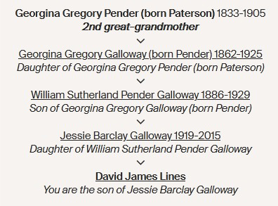 Georgina Gregory Pender, born Paterson, came into the world in 1833 in South Leith, Midlothian. Her parents were Thomas, 27, and Janet, 24. She married William Pender on December 31, 1854, at St Cuthbert’s in Midlothian. Over the course of 19 years, they raised ten children together. Georgina died on November 1, 1905, in Edinburgh at the age of 72.