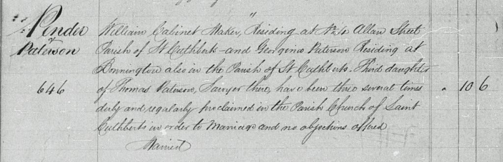 At the age of 21 she married William Pender on 31 December 1854 in St. Cuthbert’s Church.