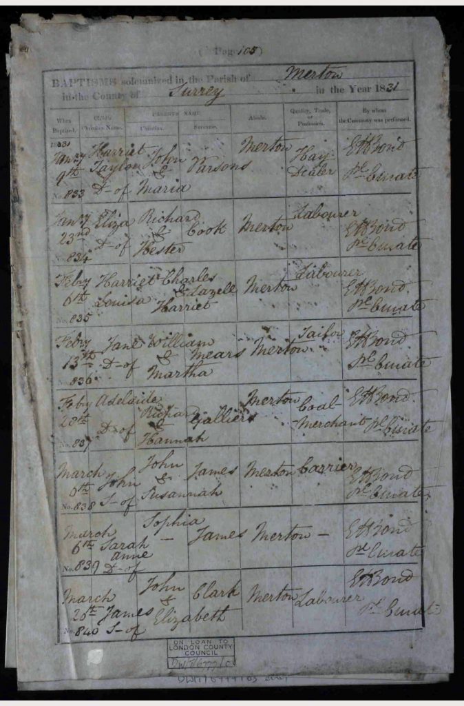 Harriet’s husband, Charles, was an agricultural worker and in 1841 they were living in Becontree with children Harriet (10), Maria (8), Sarah (6), Charles (4), and Emma (2).