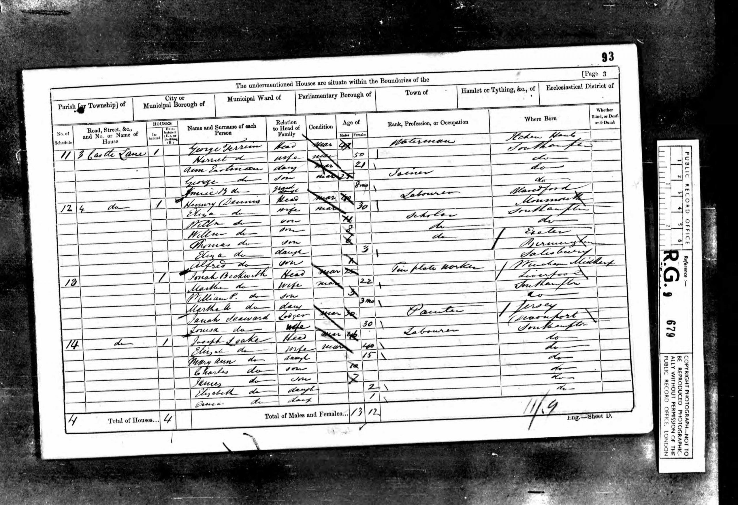 In 1861, the family lived on Castle Lane, including my great-grandmother Elizabeth Leake.