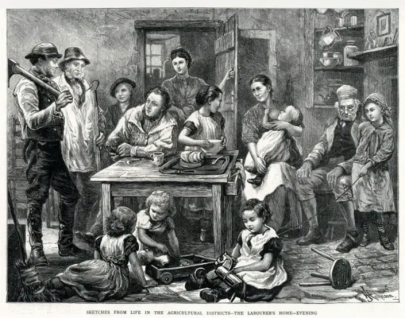 Agricultural labourers faced low wages, poor living conditions, and limited education, resulting in hardship. Labour was physically demanding, and the whole family, including women and children, joined in seasonal tasks like tying straw bands for sheaves.
