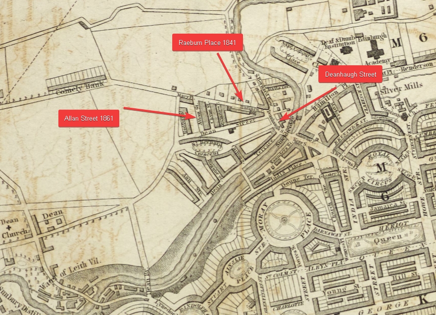 For most of their married life, they lived in the Stockbridge area, south of Edinburgh’s Old Town. By 1850, the area had undergone a major transformation driven by the portrait painter Sir Henry Raeburn, who owned the Deanhaugh and St Bernard’s estates. Deanhaugh Street was home to artisans and the labouring poor. While some parts of Stockbridge were becoming respectable, the tenements often housed large families in cramped quarters. Coal fires were the only source of heat, and the air was thick with haar mixed with coal smoke.